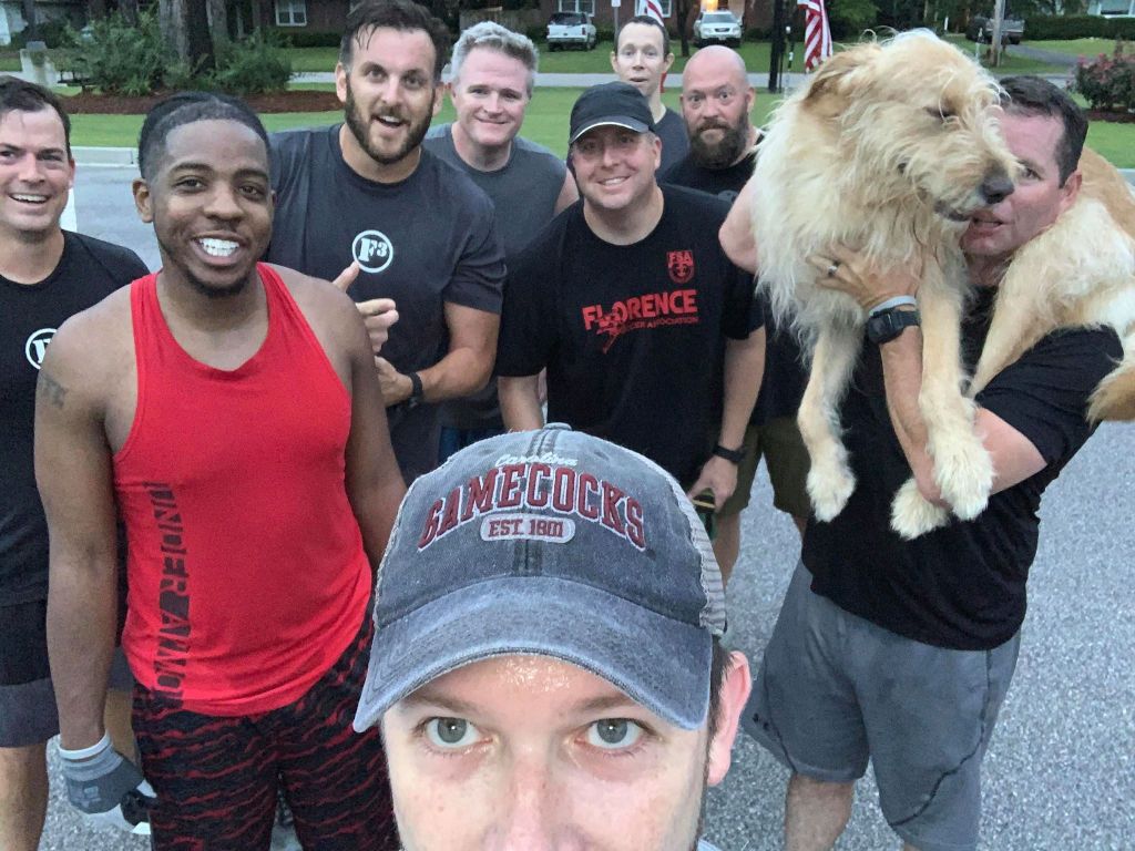 4 Guys and one Fur Pax showed up early to get fellowship before the workout and got a lap in around the school.