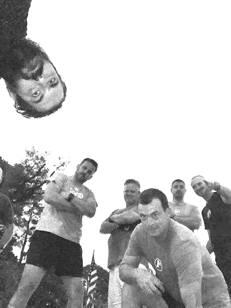Lynchpin/rotation:Furthest man from the playground runs to bike rack, turns around, runs to monkey bars for pullups and dead hangs after out of pullup gas, waiting for the next runner. Rotation is achieved by moving down to the next station when the runner arrives on the playground.