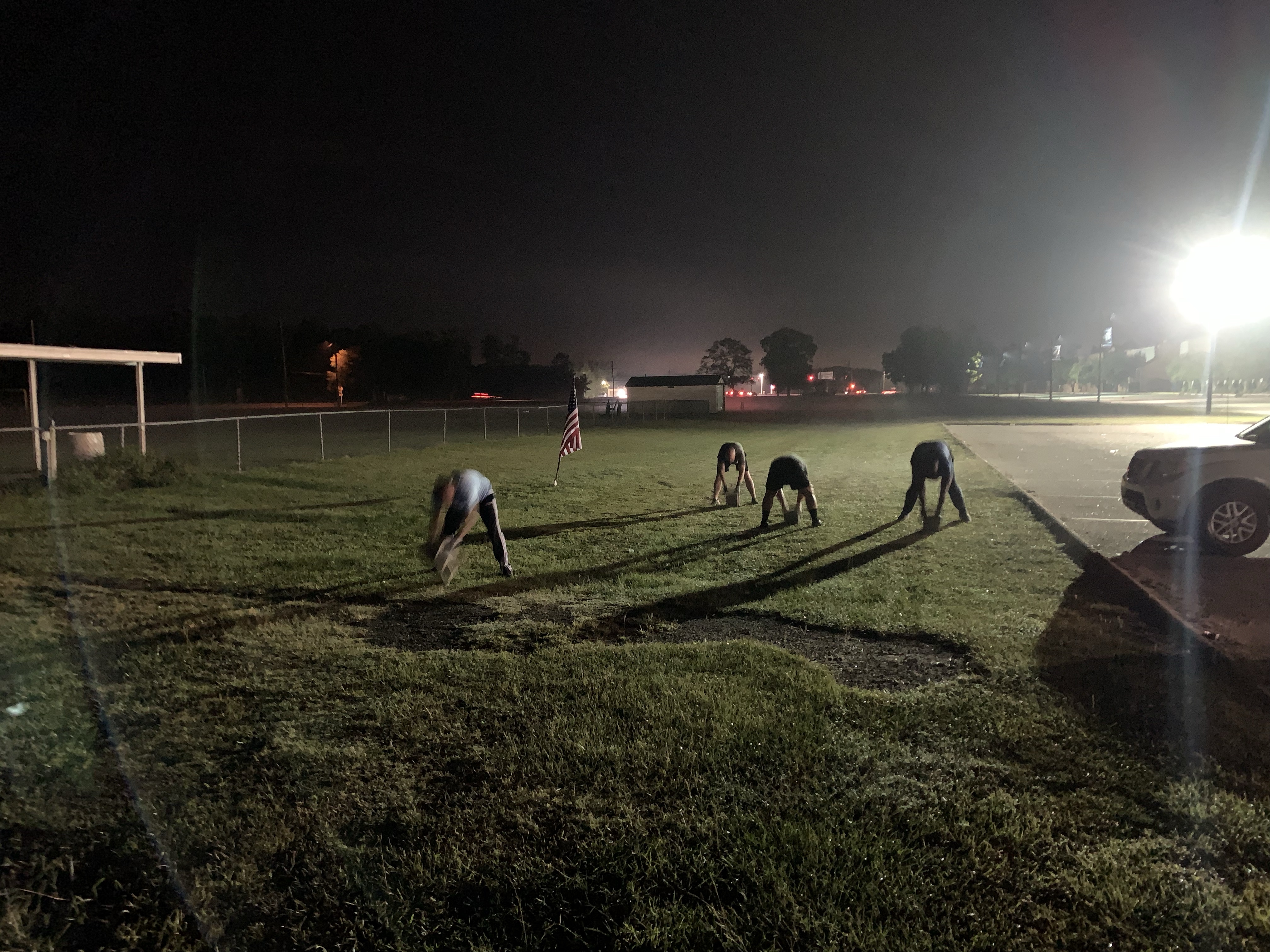 after even rounds: run across parking lot and back (400 yards)