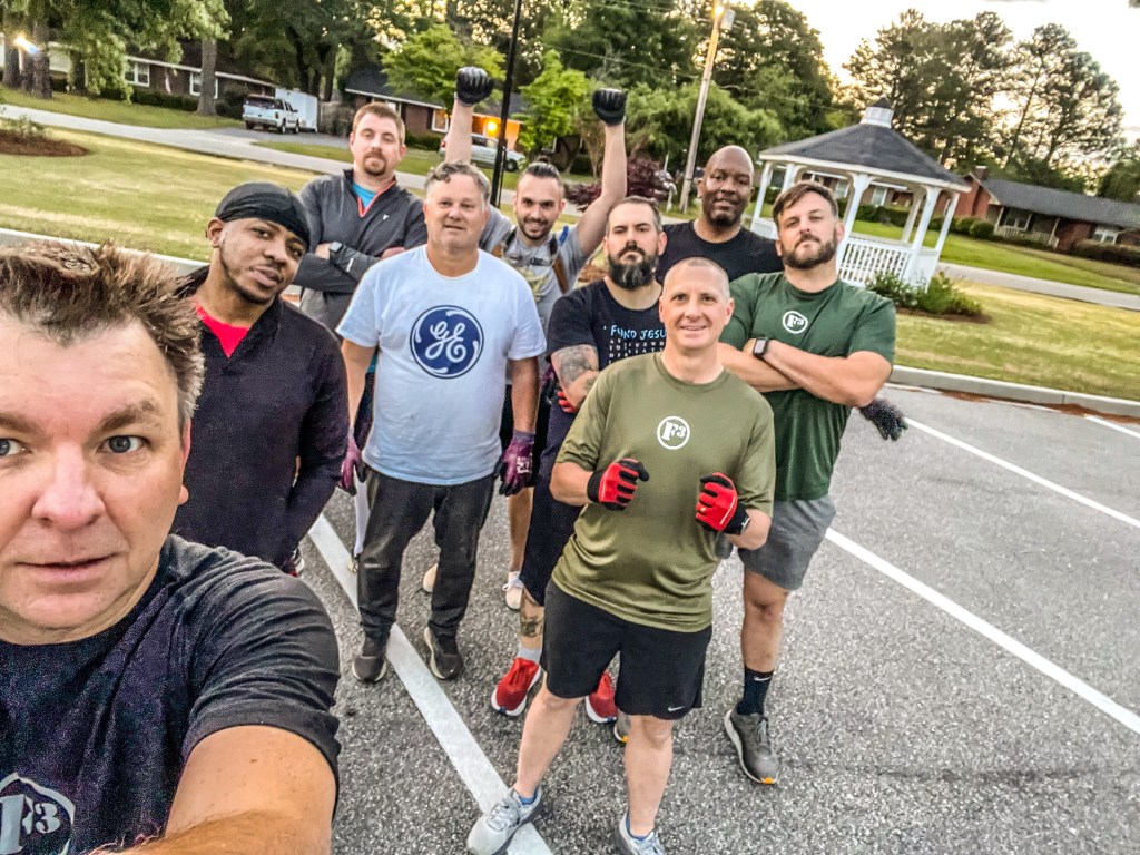 Gotta Have F.A.I.T.H. Pax completed the following exercises to a certain count, if pax stopped they ran to second light pole and back until completion.