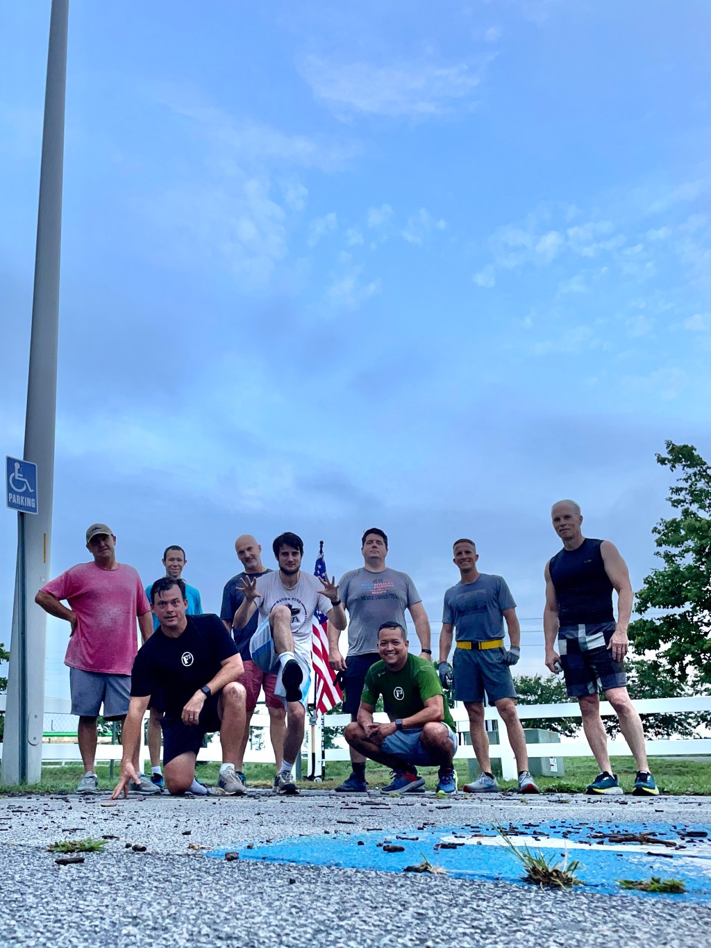 Mosey to baseball field’s closest foul pole. Assemble across foul line.