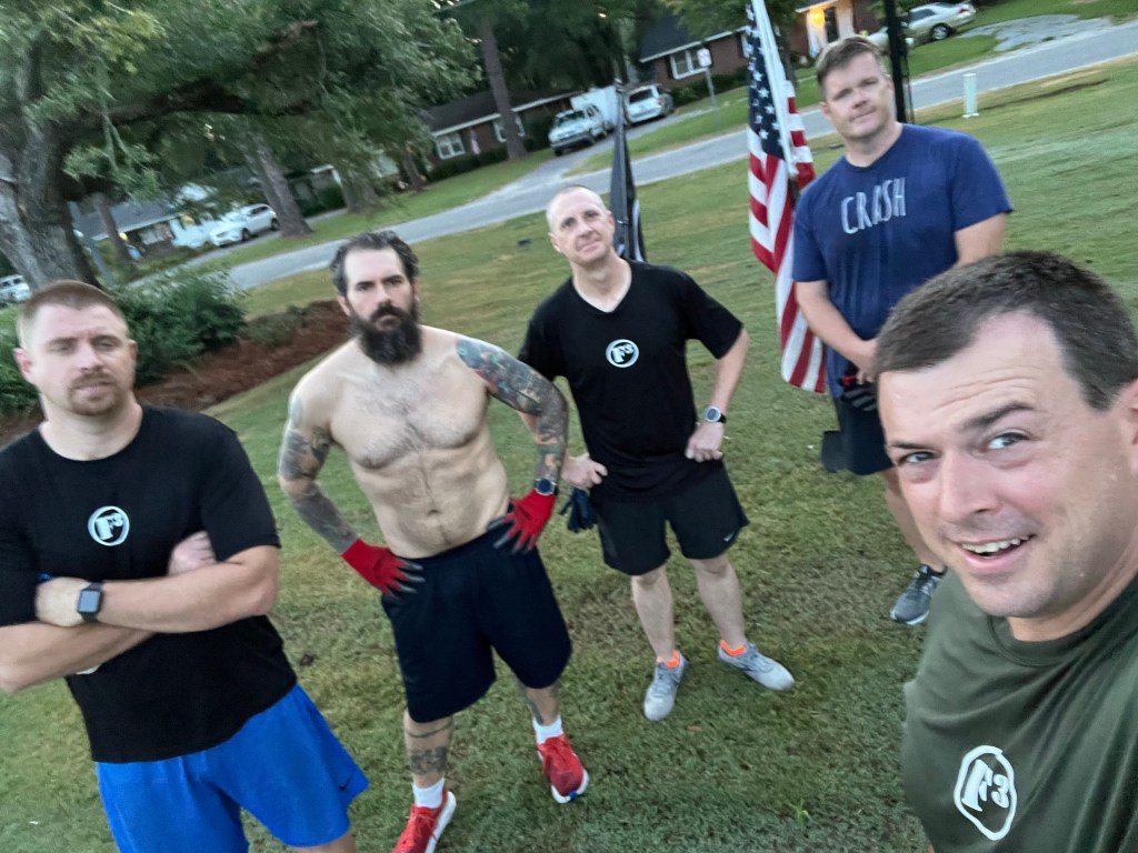 EMOM:every man hits each station (5 min) I: -Ruck good mornings -Cinderblock Kingmakers -boulder Halos (rotate full circle overhead each direction) -curb lunges -Dry docks