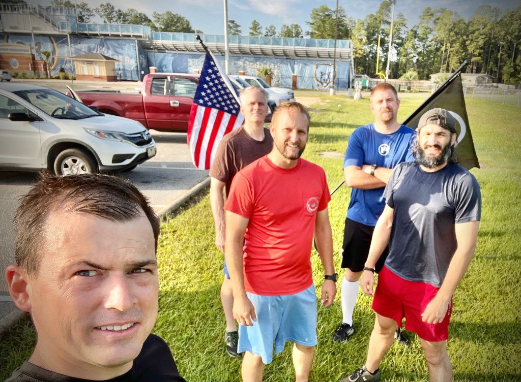 Mosey 15 yards to Paul Blart gate for Mini Run Group. -Spicy Mosey to speed bump for 10 Hand Release Merkins and high plank for The Six. - Rinse and repeat to remaining 2 speed bumps. -Spicy Mosey to Oak Tree. Speaking of trees. Al Gore 30 seconds (squat and tree hug pose). -Fancy Fresh Painted Curb: Curb Prisoner Lunge: 10 each leg. Ball of foot to curb. - Flapjack on speedbump work, but sub Merkins for 5 Bonnie Blairs (single count)