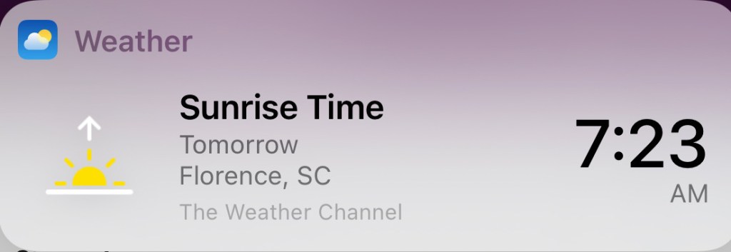 As I was preparing, I wanted to see if the sun was going to rise during 3rd F, but it turns out it was going to stay dark. There was a pretty cool God Wink though. Do you recognize this time?